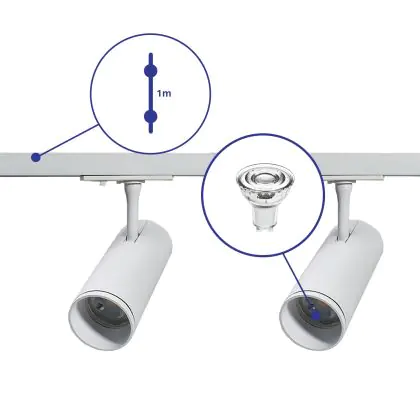 Beschreibung Bright Choice Komplettset 1-Phasen Rail 1 Meter Weiß | incl. 2x Spot + GU10 2700K 3W Dimmbar + Abschlusskappe, Stromanschluss