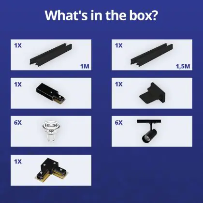 | Herstellername | Complete L shaped 1-Phase Track Set Black incl. 6x Spot fixture + GU10 2700K 3W Dim - 1 x 1,5 meter | |