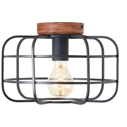 Beschreibung Brilliant Gwen Deckenleuchte Metall Holz Schwarz | 300mm - Geeignet für 1x E27