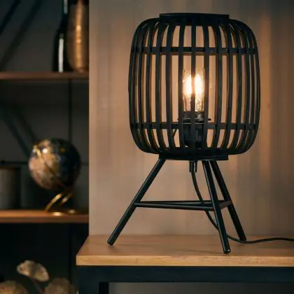 Beschreibung Brilliant Tischlampe Holzrow Metall Bambus Schwarz Holz | Geeignet für 1x E27