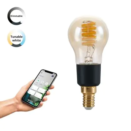 Die Eglo Connect.Z Smart LED Kugel E14 Fadenlampe Messing 4.9W 320lm - 827-865 Abstimmbares Weiß | Dimmbar - Ersatz Für 25W ist eine effiziente E14 LED-Lampe mit Retrodesign und der perfekte Ersatz für Ihre konventionellen 25W Lampen mit E14. Zudem strahlt sie Licht in der Farbtemperatur 2700K - 6500K Tunable White aus und punktet durch eine lange Lebensdauer.