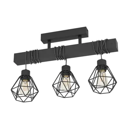 Eglo Deckenleuchte Townshend 5 Stahl Holz Schwarz | IP20 - Geeignet für 3x E27