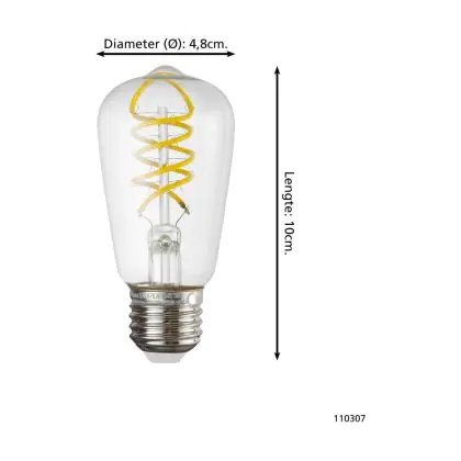 Beschreibung Eglo LED E27 Edison Klar Fadenlampe 7.3W 806lm - 827 Extra Warmweiß | Ersatz Für 60W