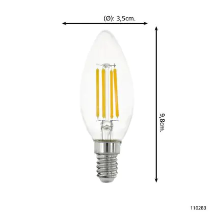 Die Eglo LED Kerze E14 Fadenlampe Klar 2.2W 470lm - 830 Warmweiß | Ersatz Für 40W ist eine effiziente E14 LED-Lampe mit Retrodesign und der perfekte Ersatz für Ihre konventionellen 40W Lampen mit E14. Zudem strahlt sie Licht in der Farbtemperatur 3000K - Warmweiß aus und punktet durch eine lange Lebensdauer.
