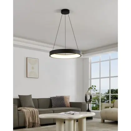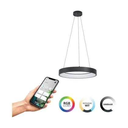 Die Eglo Pendelleuchte Marghera-Z Stahl Schwarz 27.5W 3150lm - 827-865 Abstimmbares Weiß + RGB | IP20 - Zigbee Dimmbar sorgt für eine angenehme Ausleuchtung und punktet durch modernes Design. Diese Leuchte ist speziell zur Montage an der Decke vorgesehen.