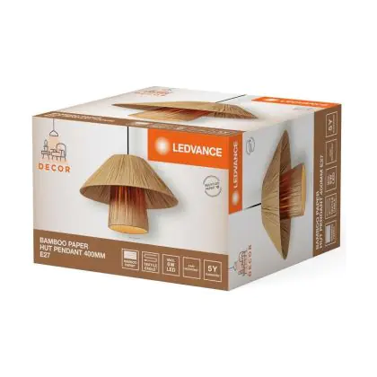 Die Ledvance Decor Bamboo Papier/Stahl Hut 400 Braun | Geeignet für E27 sorgt für eine angenehme Ausleuchtung und punktet durch modernes Design. Diese Leuchte ist speziell zur Montage an der Decke vorgesehen.