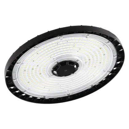 Diese LED-Hallenleuchte punktet mit einer Leuchtkraft von 27.000 Lumen (lm) und strahlt damit besonders viel Helligkeit aus. Die ebenfalls hohe Lichtausbeute von 140 lm/W zeugt von einer guten Effizienz. Wenn Sie die Stärke dieses Lichts mit dem Ihrer konventionellen Lichtlösung vergleichen möchten, empfehlen wir Ihnen einen Blick in unsere praktische Tabelle Lumen in Watt umrechnen.
