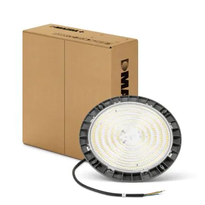 Die Mazda LED Highbay Aluminium Grau 150W 21000lm 180D - 840 Kaltweiß | IP65 ist ein Highbay und strahlt Licht in der Farbtemperatur 4000K - Kaltweiß aus. Zudem punktet die LED-Hallenleuchte durch eine lange Lebensdauer. Diese Leuchte ist speziell zur Verwendung in großen Hallen (Lager oder Industrie) vorgesehen.
