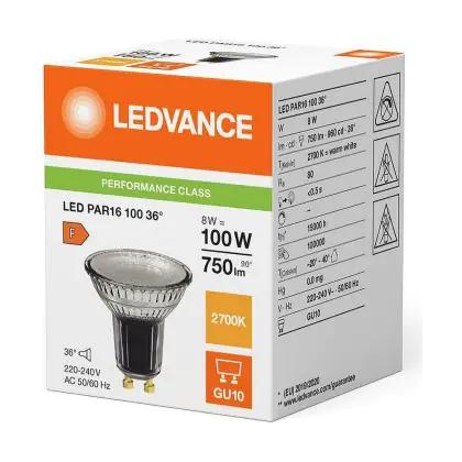 Beschreibung Mehrfachpackung 10x Ledvance LED PAR16 GU10 Reflektor 8W 750lm 36D - 827 Extra Warmweiß | Ersatz Für 80W