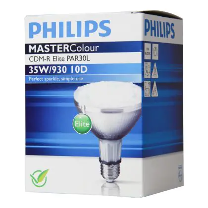 CDM-R Elite sind Kompaktentladungslampen mit integriertem Reflektor aus Aluminium. Sie zeichnen sich durch eine hohe Lebensdauer aus. Die Philips CDM-R Elite 35W 930 E27 PAR30L 30D (MASTERColour) besitzt einen E27 Gasentladungslampensockel. Diese Lampen sind nicht dimmbar.