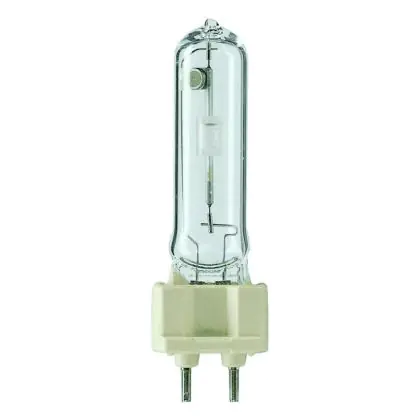 Die Gasentladungslampe verfügt über einen G12-Stecksockel mit zwei Stiften. Damit ist eine Installation durch Einstecken besonders einfach. Die Abkürzung "G" steht übrigens für das ursprüngliche Herstellungsmaterial der Sockel: Glas! Die Ziffer hinter dem Buchstaben gibt den Abstand zwischen den Kontaktstiften an, also in diesem Fall 12 mm.