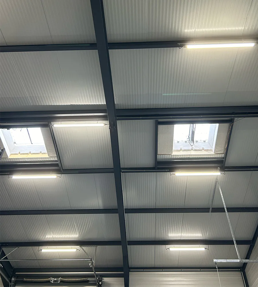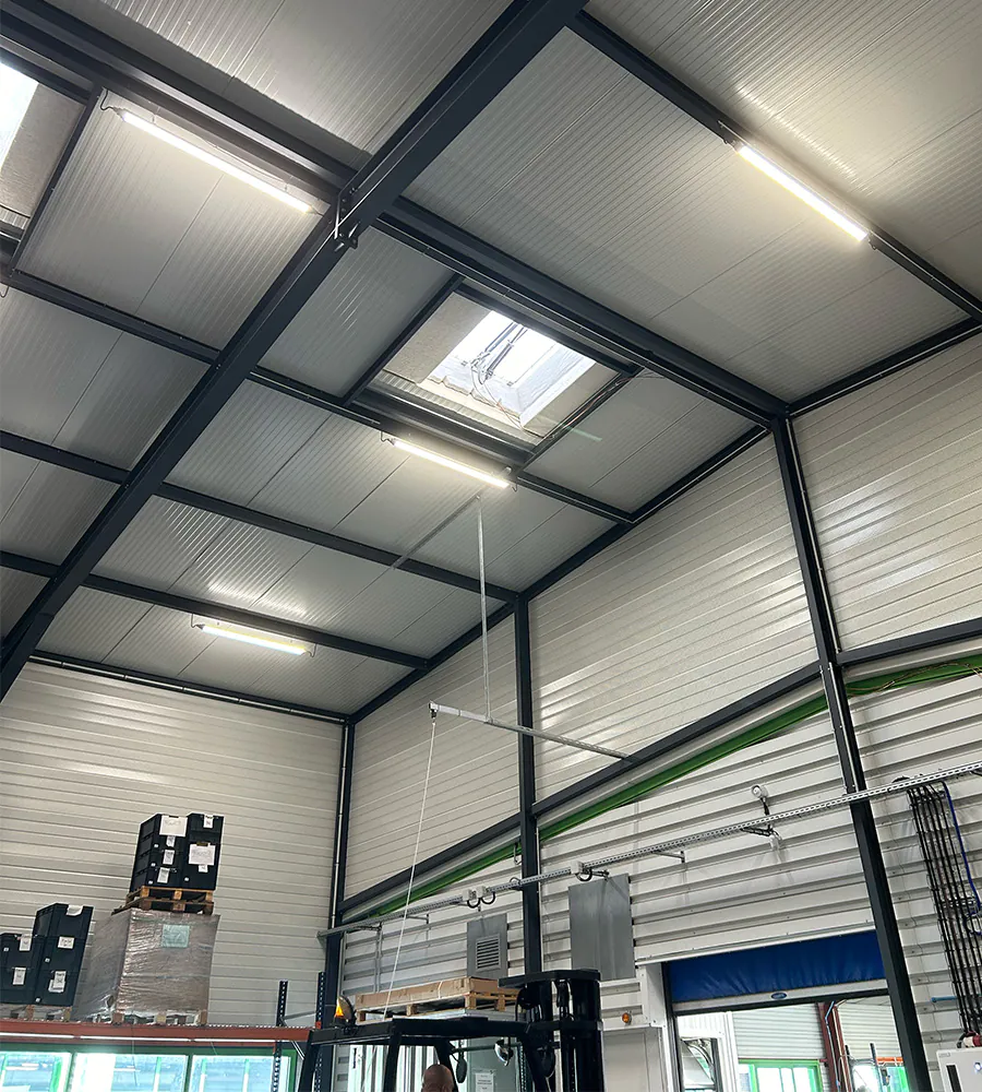 Unser Kunde stellt manuelle und elektrische Trittleitern sowie Aluminiumrampen für alle Arten von Fahrzeugen her. Die größte Herausforderung bestand darin, eine Beleuchtung zu liefern, die sowohl für die Arbeits- als auch Lagerbereiche ideal ist. Sie muss also  leistungsstark als auch gleichmäßig sein.