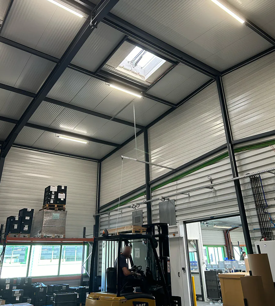 Unser Beleuchtungsexperte hat den Kunden während des gesamten Projekts unterstützt und ein Komplettpaket bereitgestellt, das einen detaillierten Kostenvoranschlag, eine Dialux-Simulation und einen kommentierten 2D-Plan des Lagers mit einer übersichtlichen Darstellung der Leuchtenplatzierung und der Lichtintensität pro Aktivitätszone umfasste.
