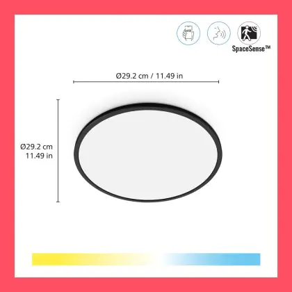 Die WiZ Smart LED Deckenleuchte SuperSlim Schwarz 16W 1300lm - 927-965 Abstimmbares Weiß | IP20 - Höchste Farbwiedergabe - Wifi Dimmbar strahlt Licht in der Farbtemperatur 2700K - 6500K Tunable White aus und punktet durch eine lange Lebensdauer. Als Bulkhead kann diese moderne Leuchte sowohl an der Wand, als auch an der Decke montiert werden.